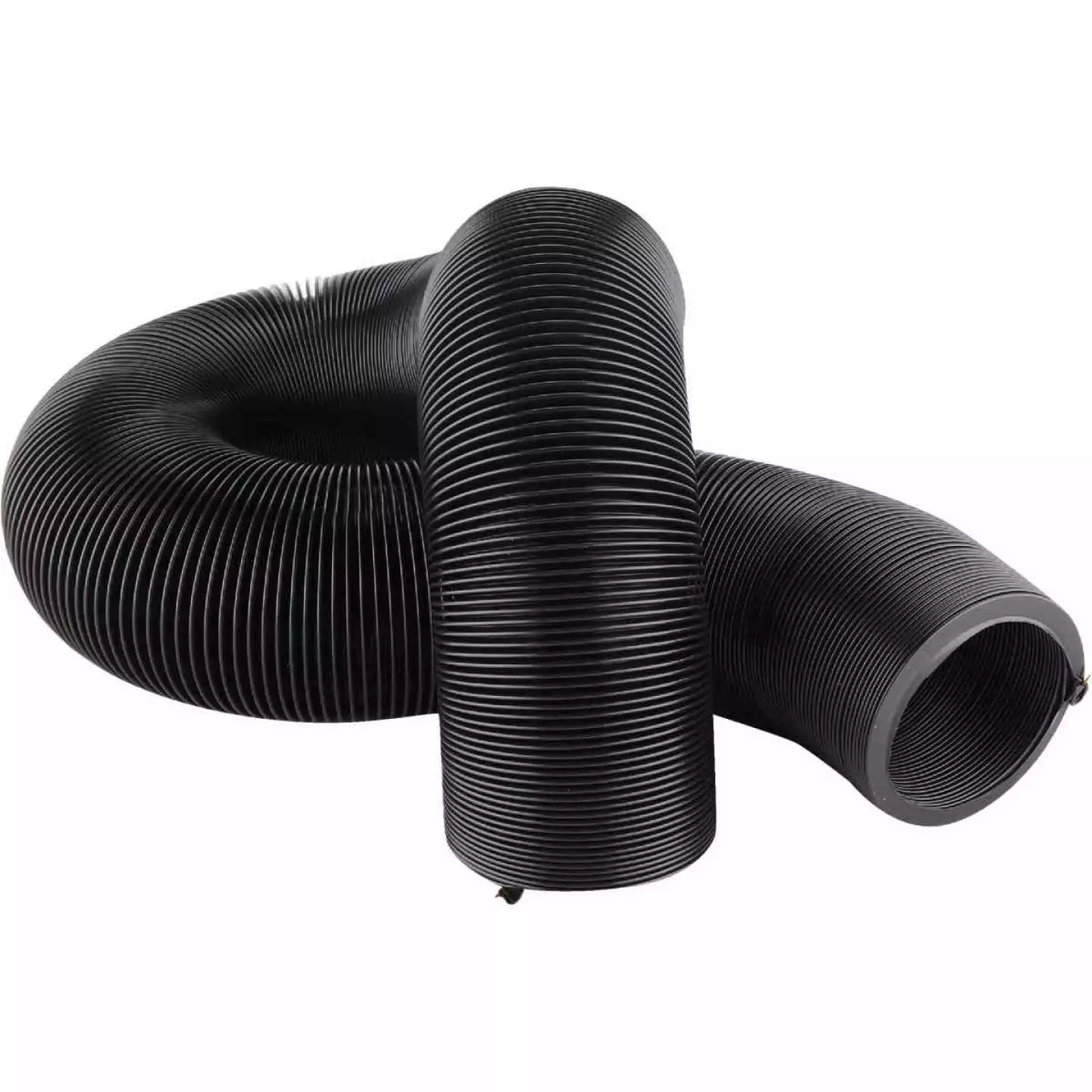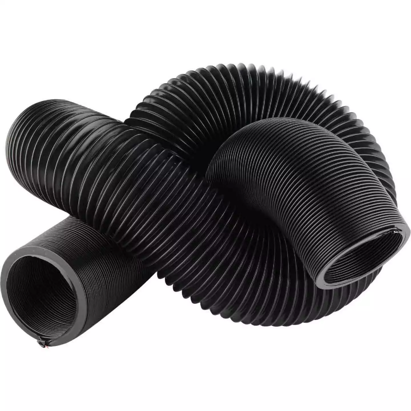 12 mils of black HTS vinyl, created for the occasional RVer. The 10′ hose compresses to 14″; the 20′ hose to 27-1/2″ for storage.