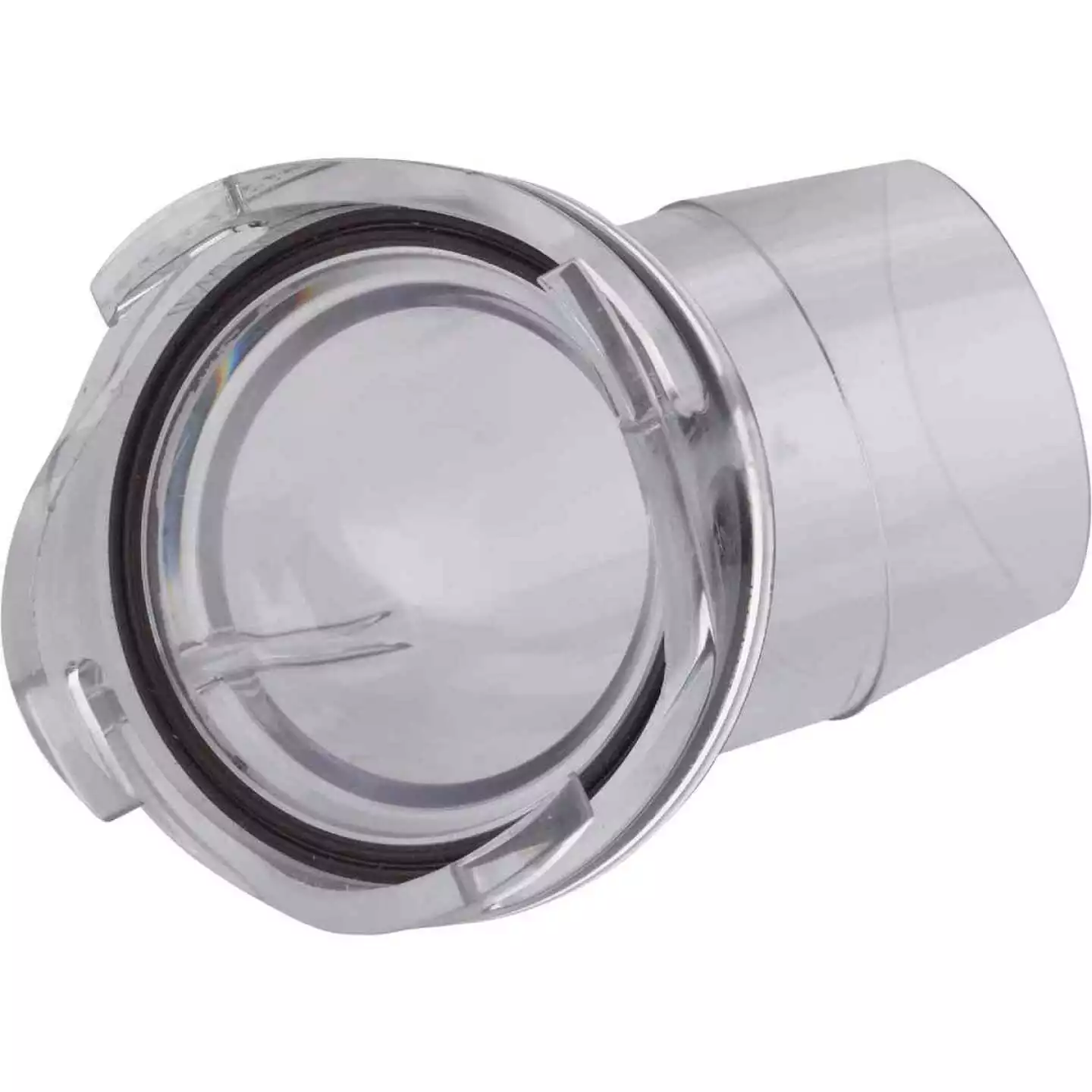 Know when your system is clean with this see-through 45 deg. hose adapter made of break-resistant polycarbonate.