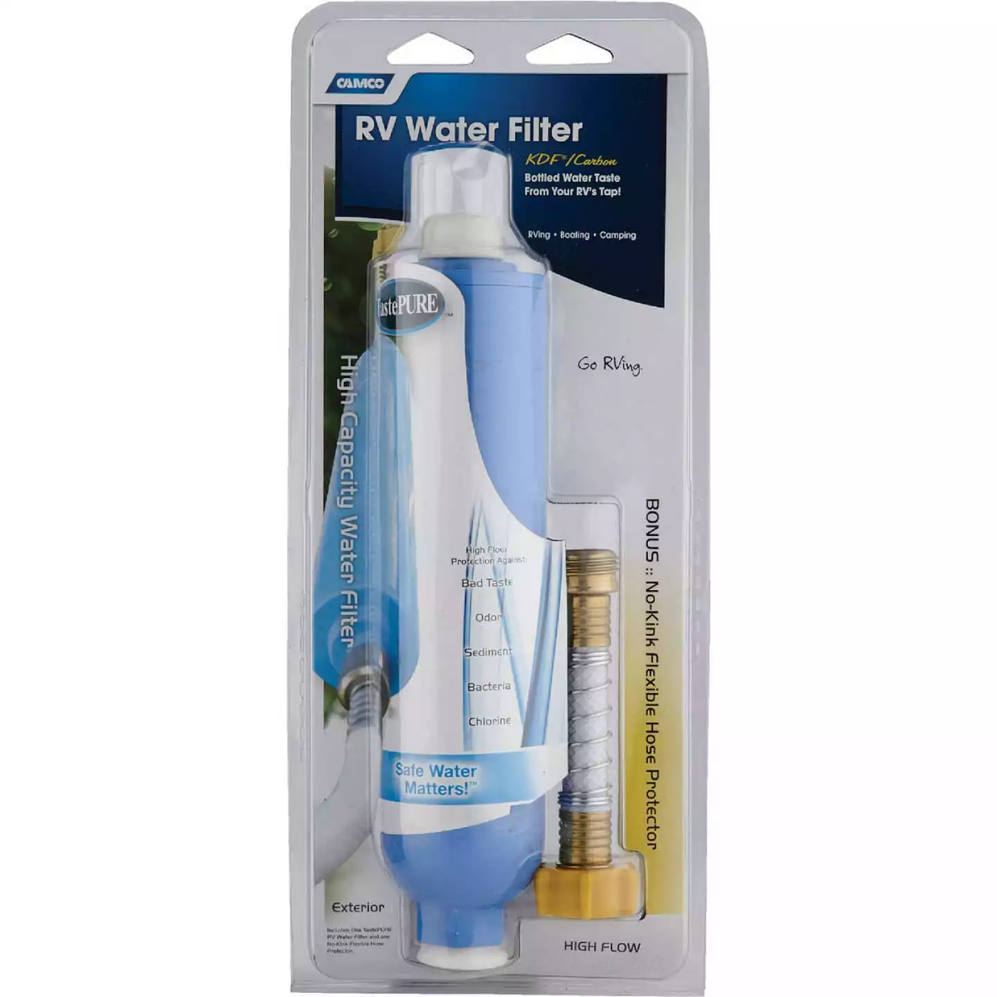 Larger capacity 100 micron filter greatly reduces bad taste, odor, chlorine, and sediment in drinking water and lasts an entire season. Durable in-line, exterior mount filter has a wider body to increase flow.
